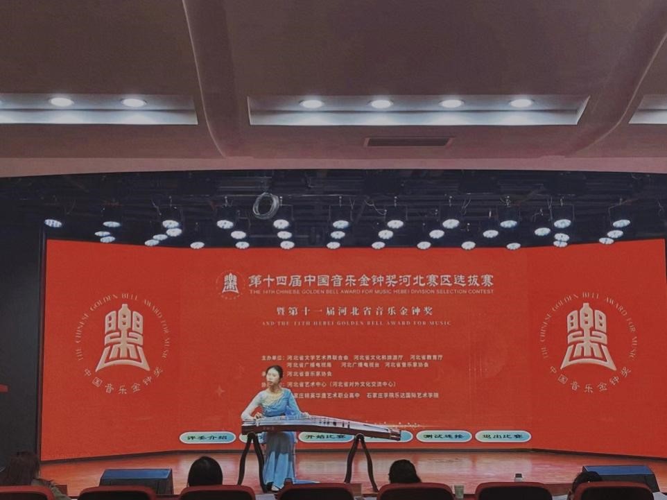近日,第十四届中国音乐金钟奖(河北赛区)在石家庄落下帷幕。来自全国各高校艺术院系、艺术团体、部分国家专业院团的百余名选手参加了此次大赛。经过激烈的角逐,我院2021级音乐专业研究生董慧聪在古筝独奏(青年组)中荣获铜奖。