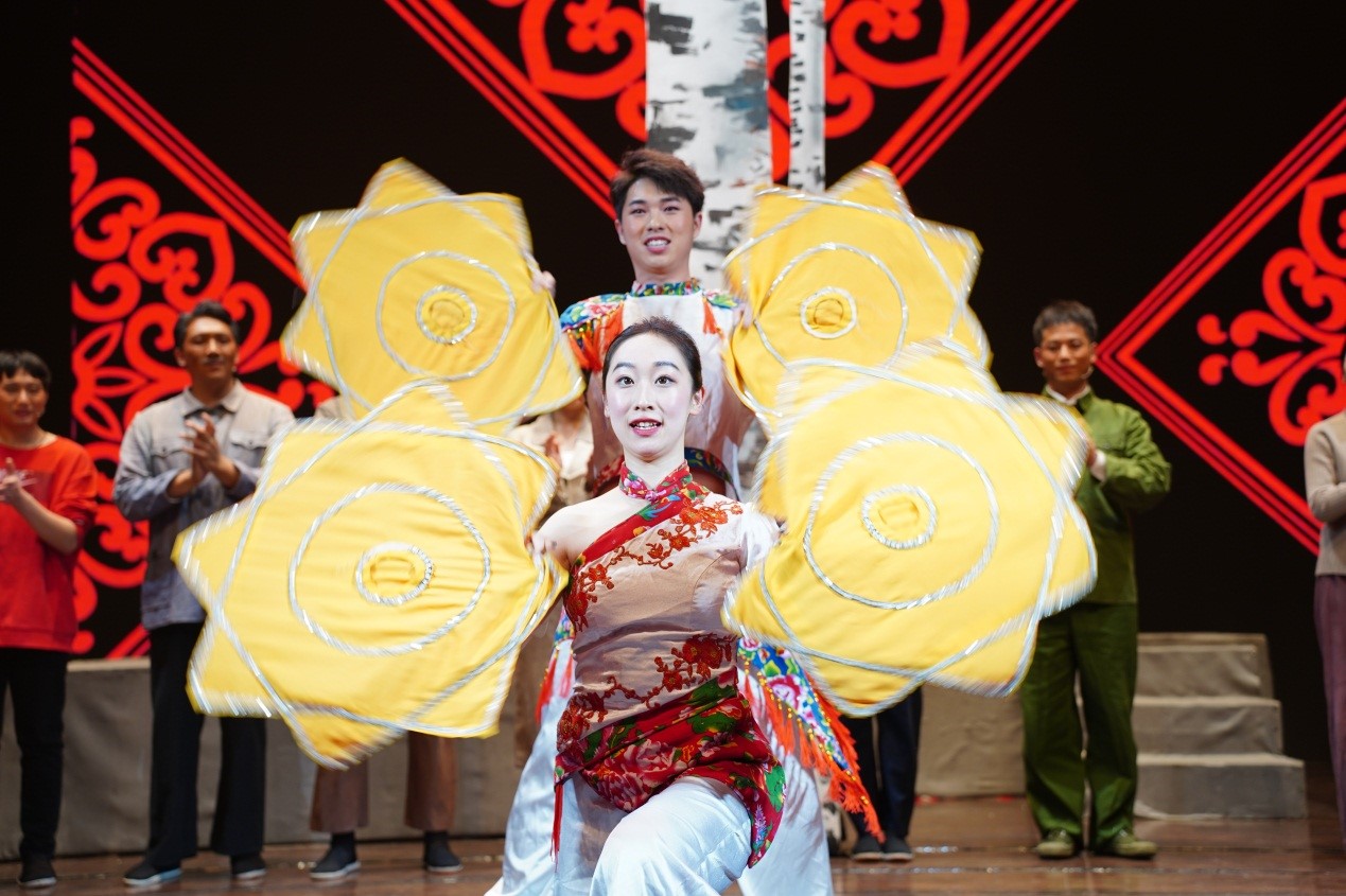 艺术学院呈现的作品《秋月黄花黄》以东北地区喜闻乐见的二人转艺术为线索,将一段感人至深的爱恨纠葛以艺术手法呈现在舞台之上。年轻的文艺兵秋月作为先进的积极分子被派去东北,着手进行民间旧戏班社改造工作。文艺部队出身的飒姐秋月带着满腔热血来到戏班,便先被同样对生活充满激情并即将接任班社的少班主木头“捉弄”了一把,从此,秋月、黄花、木头、老焦等无数人的欢喜与忧愁交织,踏上了这出动人心弦的新戏舞台,上演了浩浩荡荡的三十年。《秋月黄花黄》的成功上演得到了现场专家及观众的一致好评。