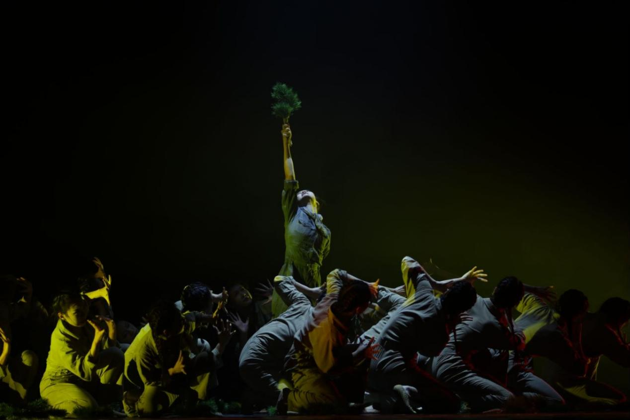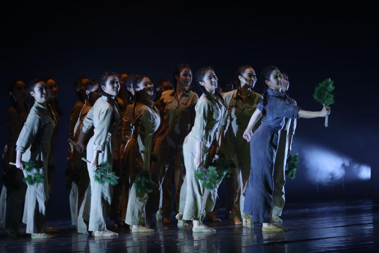 艺术学院原创舞蹈《55秋》,根据在新中国荒漠化治理的历史缩影中,彰武人民“点沙成金”开拓绿洲的故事进行编排。讲述了治沙人胸怀誓以白发换绿洲的大漠初心,在一场场艰苦卓绝的人沙大战中,创造旧貌换新颜的人间奇迹。彰武,位于辽宁省西北部,地处中国最大的沙地—科尔沁沙地南部。在这片土地上,“人沙大战“已经延续了 70多年,彰武民众与风沙展开了一系列斗争,实现了由“沙进人退”到“绿进沙退”的历史性转变,由此成为新中国防沙治沙的起始地。作品中,“种树”“挡沙”等赋有生活化的标志性舞蹈动作反映出治沙人敢于吃苦的大无畏精神,映射出新时代青年的顽强斗志以及充满朝气蓬勃的生命力。