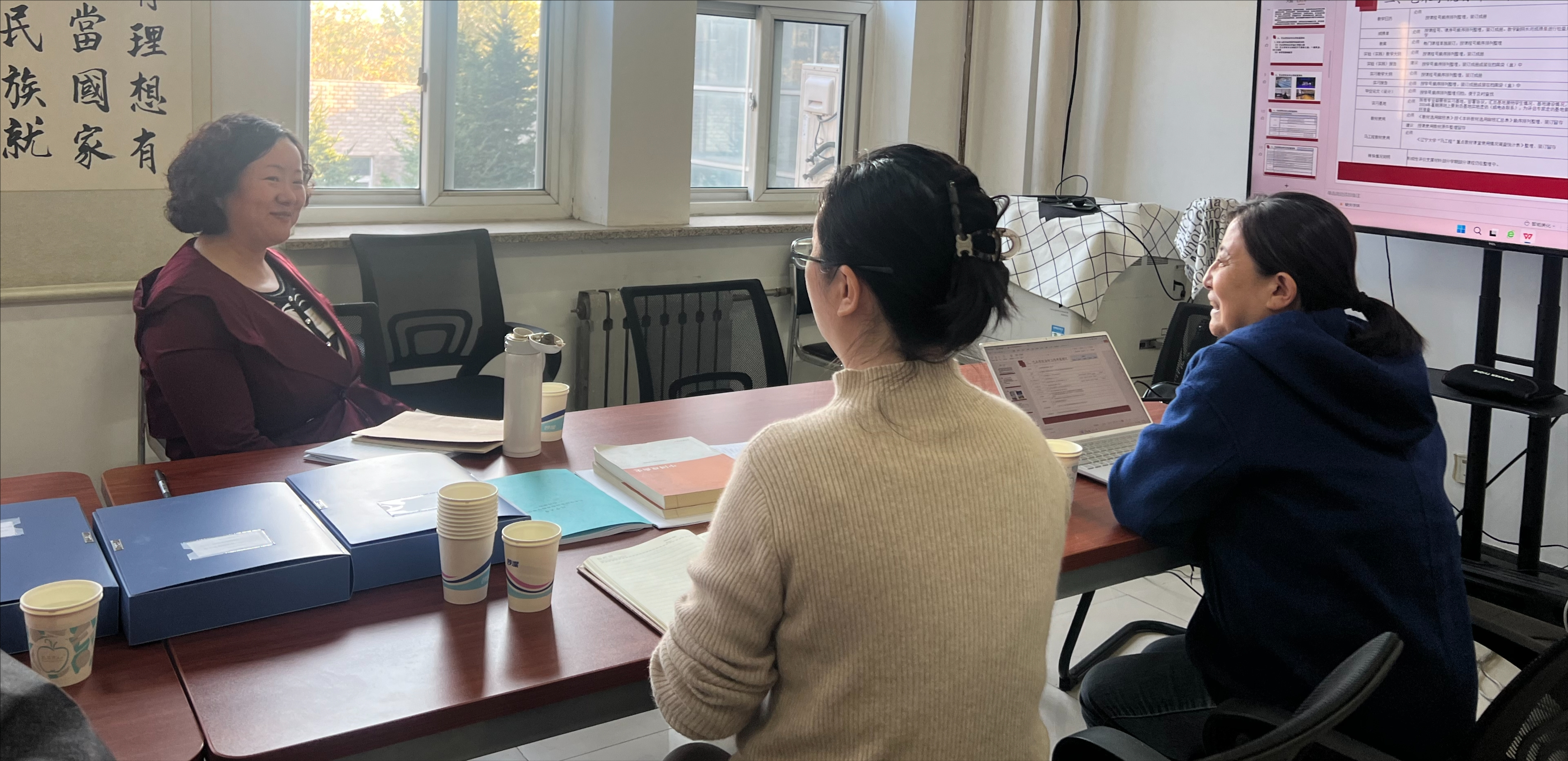 李宇鹏副校长视察艺术学院迎评环境氛围准备情况并听取艺术学院院长安琳就专家入校评估考察路线的安排和汇报内容、评估期间课程PPT准备和自查、学院自评报告和支撑材料准备整理及本学期课程、雨课堂使用情况、提升课堂教学质量以及保障课堂纪律的举措等方面汇报。