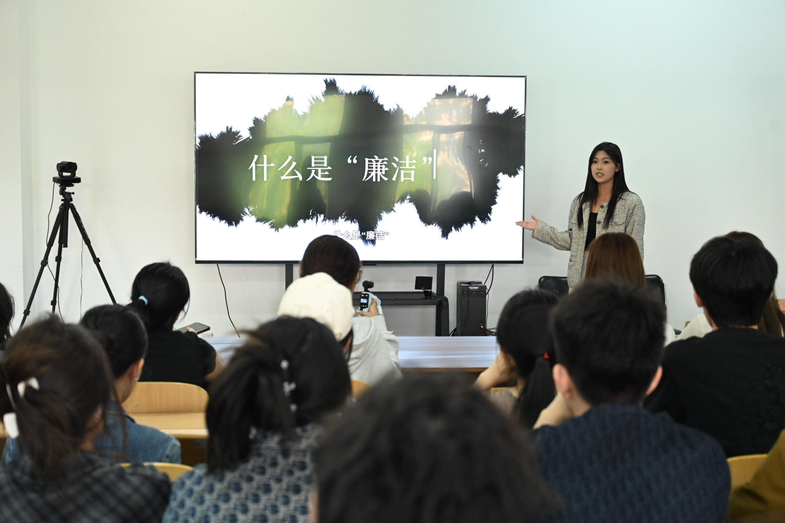 9月17日,在艺术学院文华楼340会议室举办获奖作品展示和颁奖大会。参赛同学们以声音为媒介,通过抑扬顿挫的诵读、真挚饱满的情感,让廉洁精神跨越时空、直抵人心。现场师生在沉浸式聆听中,既感受到中华优秀传统文化的深厚底蕴,也深化了对“清正廉洁”时代内涵的理解,有效推动廉洁理念融入校园日常、根植学生心中。